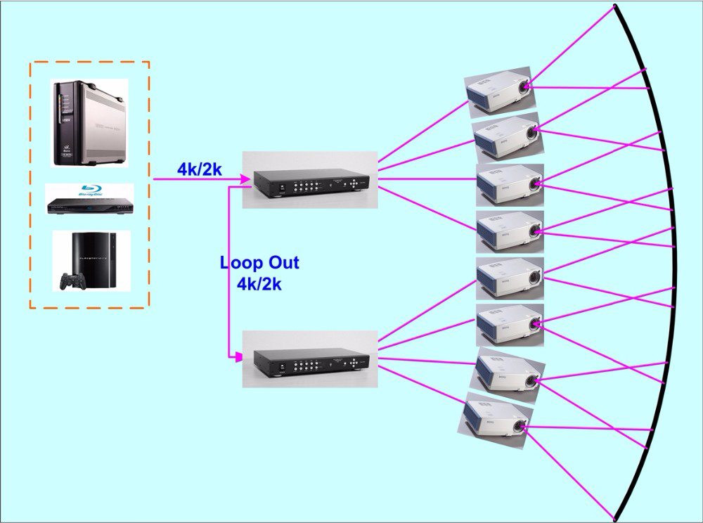 این دستگاه قادر به ایجاد ویدئووال بر روی سطوح ناهمگن و کروی با انواع ویدئو پروژکتور می باشد .