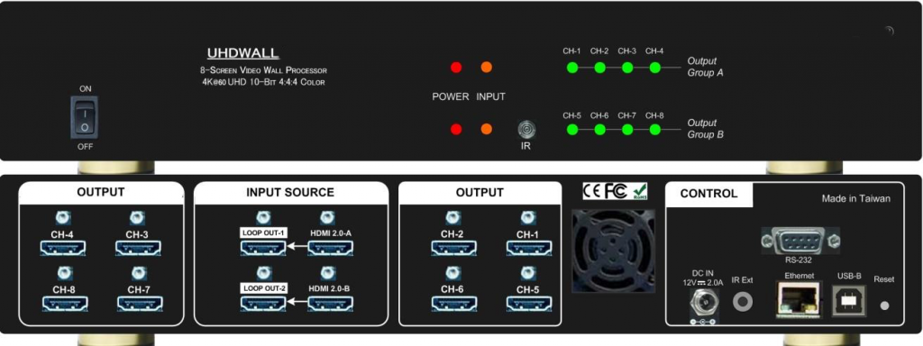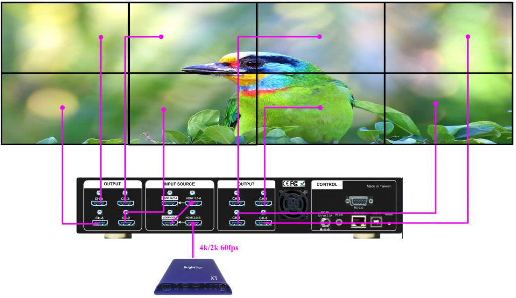 – Output: 4x HDMI up to 1080P & WUXGA.