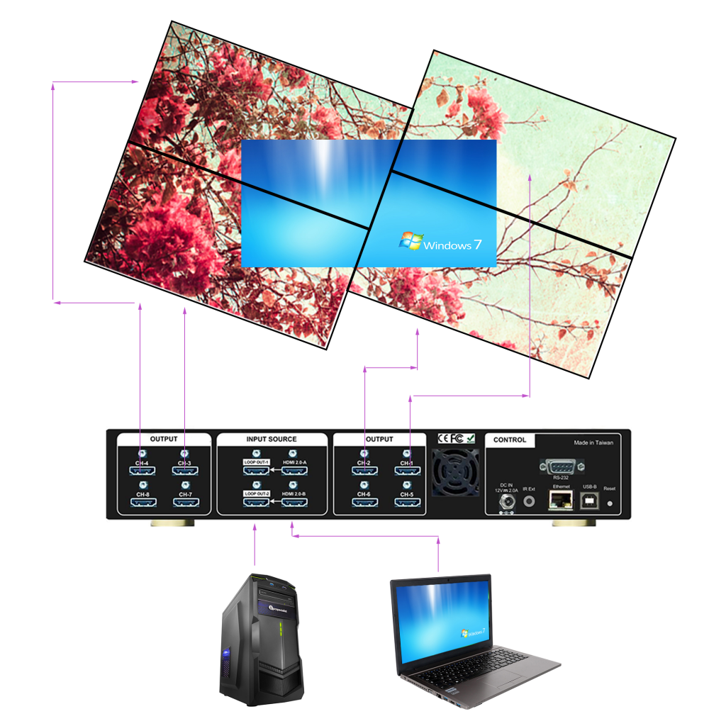 - دارای ۳ ورودی همزمان HDMI, DVI, DisplayPort, VGA and YPbPr
