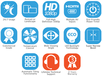 این نمایشگرها دارایاسپلیتر داخلی بوده و بدون نیاز به دستگاه جانبی قادر به تقسیم کردن تصاویر می باشید و می توانید یک ویدئو وال ۱۵ در ۱۵ ایجاد نمایید.